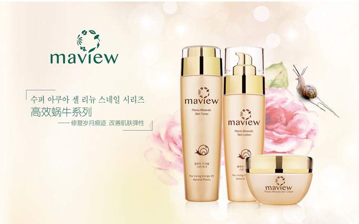 maview(夢薇歐),意為純凈、無瑕,旨在讓女性的肌膚時刻沐浴在純凈的大自然中,永葆無瑕、年輕的健康肌膚。善茗株式會社研究、生產的無添加天然植物護理品富含 11 種野生植物中提取的礦物成分,能提高肌膚肌能、激發細胞活性、防御肌膚問題。