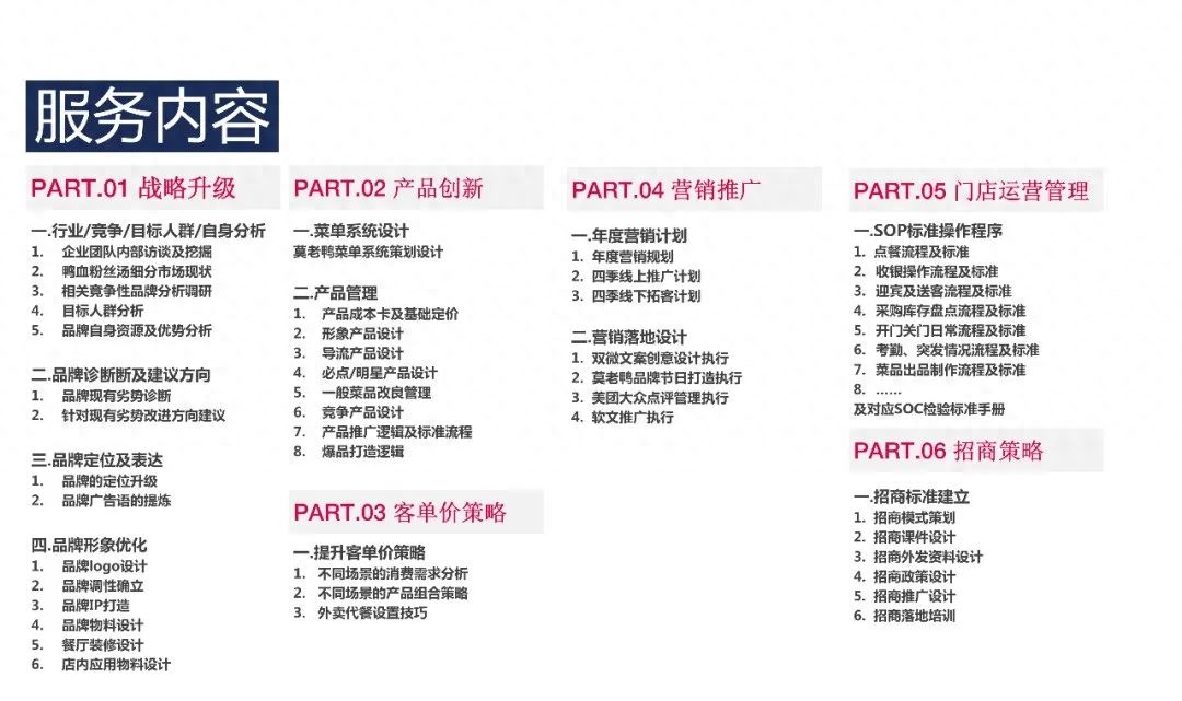 美御為莫老鴨提供品牌升級的方案與服務,給莫老鴨的定位是「新派·老鴨粉絲湯」,最核心的關鍵點是把原來只做快餐的模式升級為”快餐標準+小吃類目”,打造爆品“招牌養胃珍味鴨血粉絲湯”,設計開發了一系列“鴨血粉絲湯+鴨類小食”的套餐,讓莫老鴨的客流量不僅限于某一時間段,而是能在不同時間段都能保持較高的客座率。